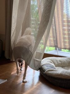 皆さんこんにちは! 湘南開発室のKです! 近頃、当社では除菌用のアルコールの製造に加え、 次亜塩素酸ナトリウムを使ったアルコールフリーの除菌用製品も製造しています。 こちらは、製品の塩素濃度を測定する機械です。 製品を50µL(1µL=0.001mL)のとても少ない量で、塩素の濃度を測ることができます。 測りたい液体50µLを機械に入れたら「ピピッ!(これから測ります!)」、 測り終わると「ピーピーピー(仕事完了!!)」と音がなって、かわいく思えてきました。 かわいいといえば、またわたしの犬の話なのですが、 日向ぼっこが好きなようで、雨の日以外は曇りの日でもずっと窓とカーテンの間にいます。 時々、しっぽや前足がカーテンのすそから見えていて、とてもかわいいです!! まだまだ在宅勤務が続く方や、公共交通機関を利用して通勤する方、 お家で過ごされる方など色々なパターンの方がいらっしゃると思いますが、 時々換気して外の空気を吸ったり、太陽の光を浴びたりして、 ストレス解消・軽減、リラックスしてみてくださいね。 開発室K