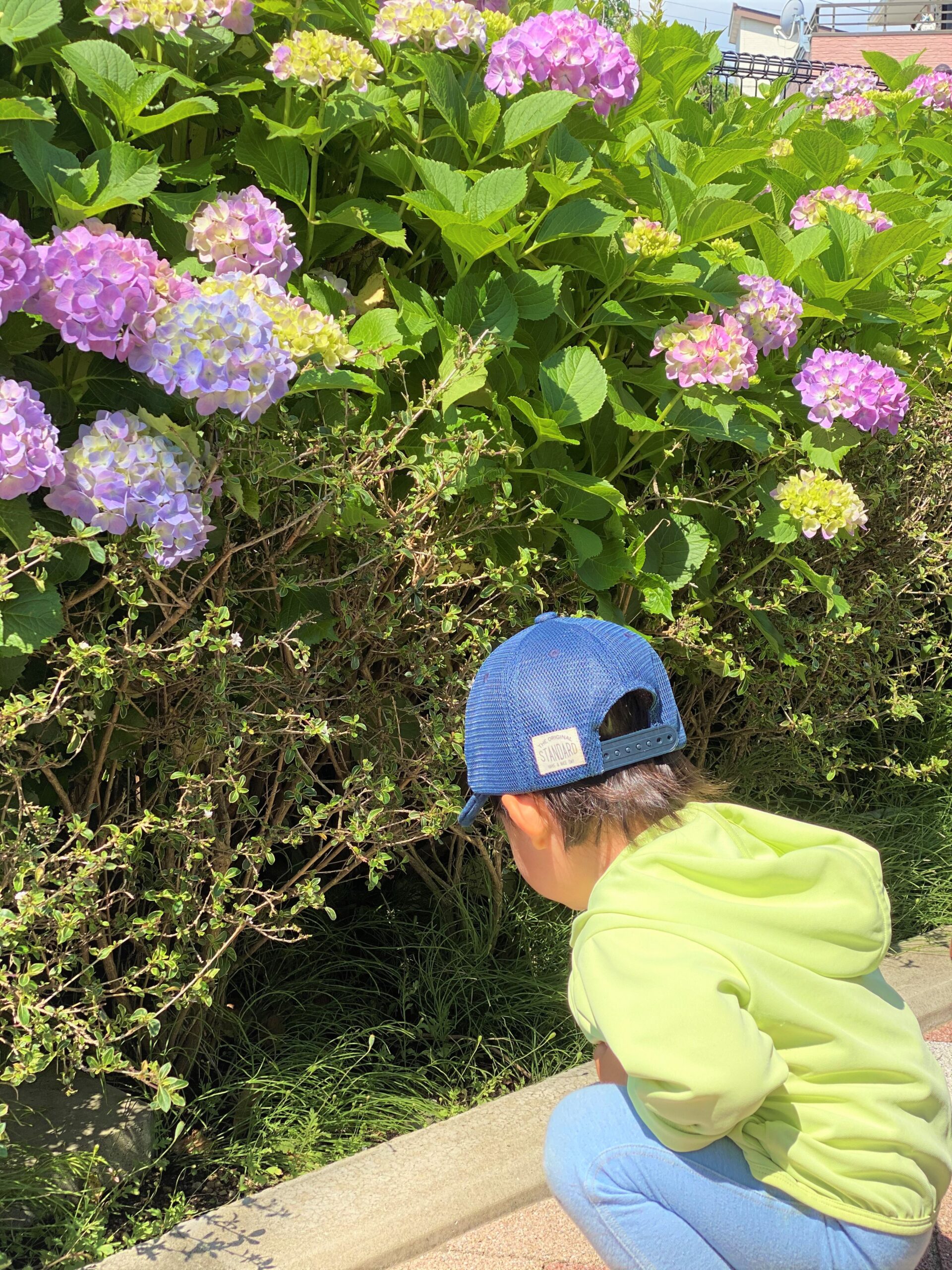 息子は紫陽花より根本の方の草とかに興味津々の様子。