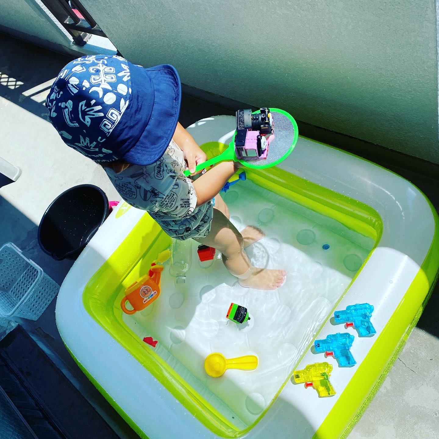 東京オリンピック開幕にあたり祝日の移動で4連休となった今年。 梅雨が明け連日真夏日の連休、息子と沢山遊べるけど・・・ 初日はいつも通りの散歩コース、暑さで体溶けそうです。いや溶けました! あと3日コレしんどいです。なので、ららぽーとへプールを買いに!! 2日目からは午前中はプールがお決まりに。 息子はプールのおかげで楽しく過ごせた連休となり、僕は息子の行動や言葉ひとつひとつが面白く楽しませてもらいました。 ただ準備と後片付けが大変でした。せっかく涼んだのに片付けで汗だくに・・・ そんなご褒美にビール飲んじゃいました! 3日目、4日目もこのくだり。 息子はプール三昧、僕はビール三昧 な4連休になりました。 p.s.水のpHは約7.0・ビールのpHは約4.3らしいです。 HOSHINA