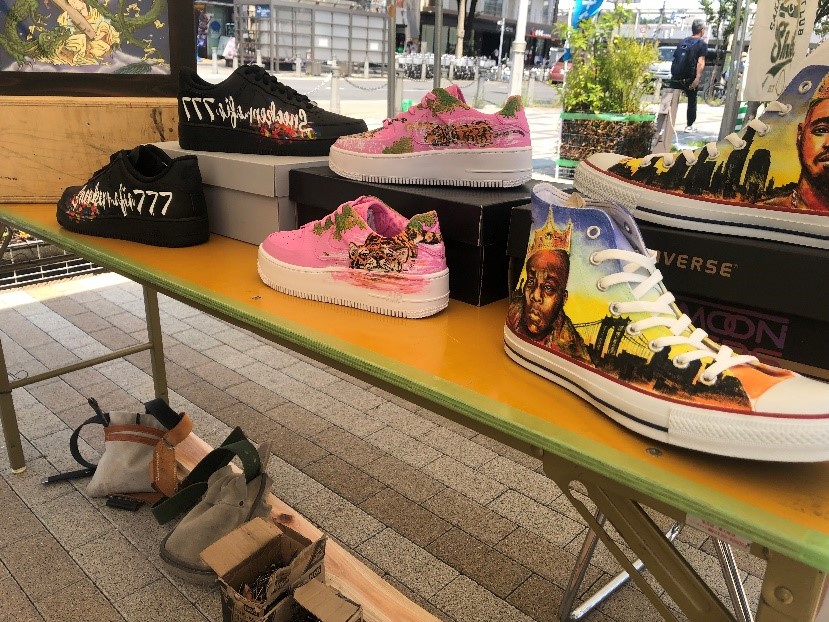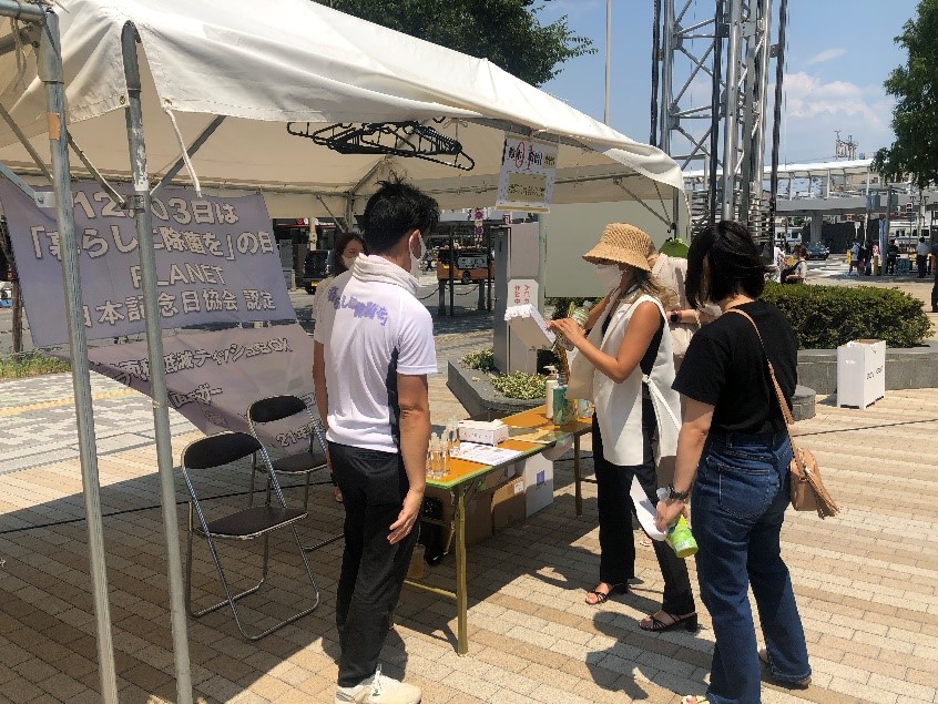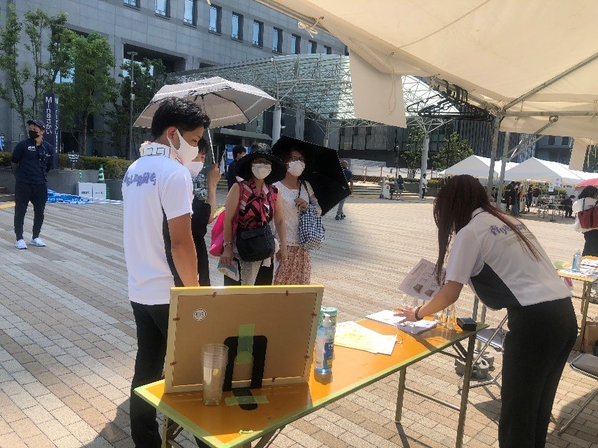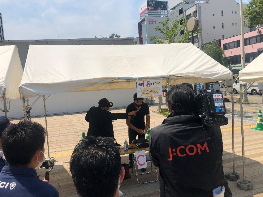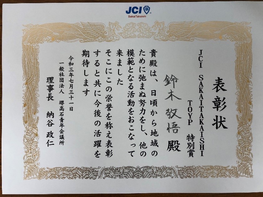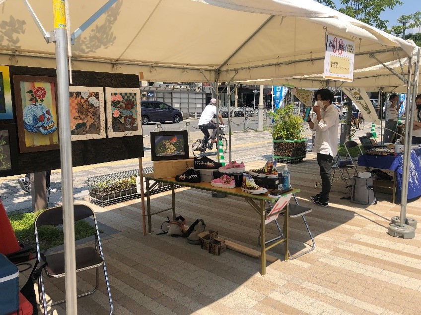 7.31(土)に堺市役所前で行われたJCIのイベントに当社のブースが出展されました。 炎天下の中、15ブースが出展され、それぞれいろいろなものがアピールされていました。 当社は社長自らブースに立ち、来場者の方々に当社がどのようなことをしている企業かを説明し、 聞いてくださった方にアルコールを配りました。 コロナ禍の中で、日中の暑さもあってかぼくが訪れた時間は人もまばらではあったのですがイベントは盛り上がっており、 ユーチューバーの方とJ:comの方が取材として来られており、各ブースに話を聞いたり、実際に体験したりしていました。 この写真はマジックで地域を盛り上げようとしている方の取材をされている様子です。 正直このユーチューバーはだれかわかりませんでした。 ぼくが興味を持ったのは靴に絵を描く方で、人気のスニーカーに絵を描いて世界に1足しかないものを作る 活動を行っているアーティストの方です。 普段は舞台美術・デザインをされているようで展示している絵の額縁も自ら作っているそうです。 ほかにも和菓子を販売されているブースや子供たちにホッケーなどのスポーツを教える団体など様々な ジャンルの方々が出展されていました。 そして、最後に来場者にアンケートを取り集計して人気のあったブースが表彰されたそうで、当社のブースが特別賞をいただいたそうです。おめでとうございます!! 暑い中、当社の出展に協力していただいた皆様、当社のブースに立ち寄ってくださった皆様、そしてブースに立って当社のことをアピールしてくださった社長、本当にありがとうございました。 このようなイベントで当社のことがたくさんの人に知れ渡ればいいなと思いました。 たいし