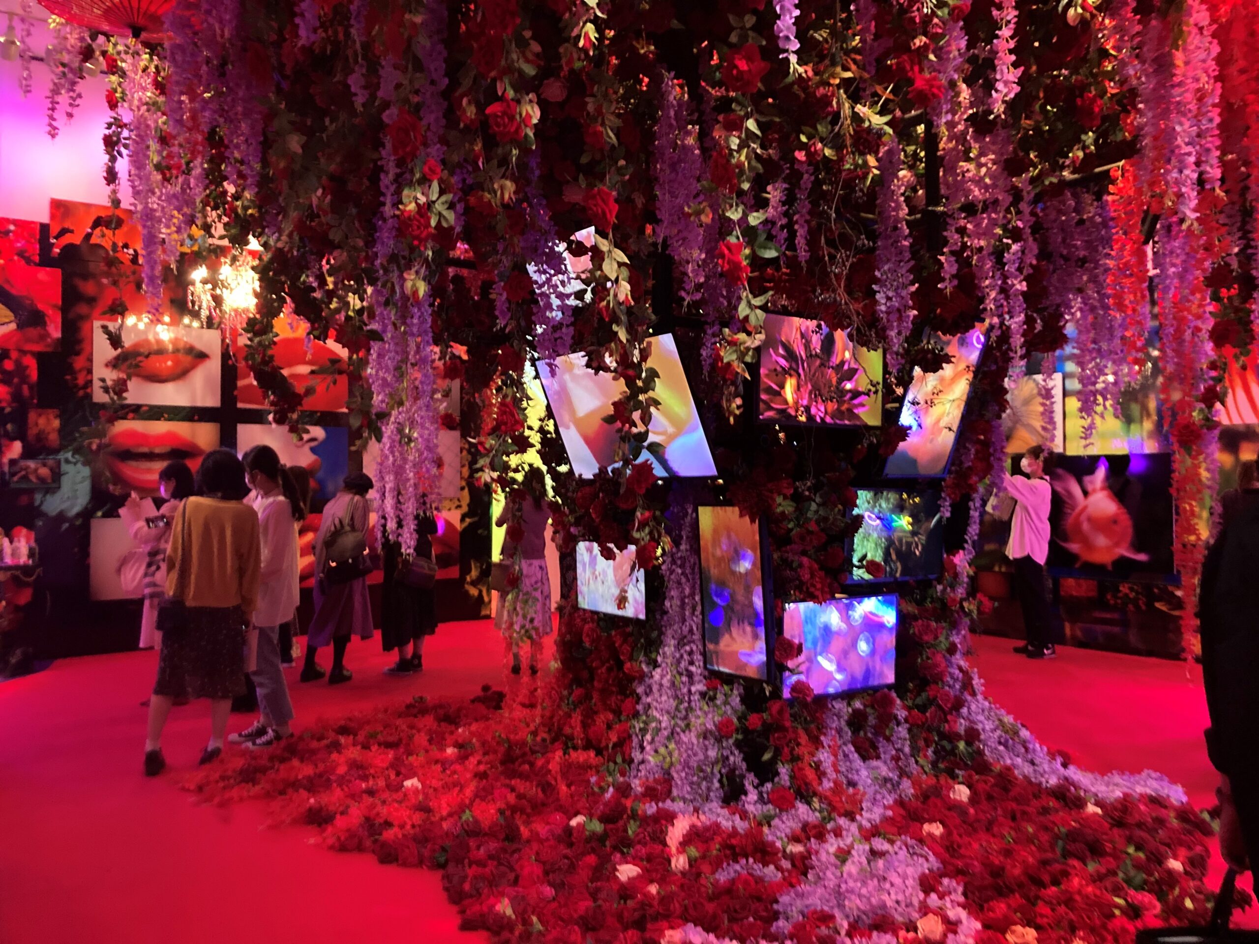 先日、上野で開催している蜷川実花展-虚構と現実の間に-へ行ってきました。 蜷川実花さんの撮る写真・映像が大好きなのでとても楽しみにしていました。 館内に入ると可愛いが止まりませんでした!! 私の中で実花さんといったらお花の印象が強いです。 全面お花の部屋はカラフルでいるだけで明るい気持ち・元気になれました。 そのあとはお父さん蜷川幸雄さんとの最期の思い出・自身の素直な感情(喜怒哀楽) 著名人・パラリンピック選手の写真・インスタントカメラで撮影した写真などが飾られていました。 最後の部屋は毒々しい感じの蜷川ワールド!!って感じで素敵でした。 書斎を丸々引っ越しして展示されているようです。 どこを撮っても可愛くて素敵すぎてあっという間な幸せな時間でした。 そのあとは初めてアメ横へ行きおいしいものを食べたり飲んだりしました。 コロナウイルスの感染者数も減ってきているので思っていたよりも人が多くにぎわっていました。 この日は芸術の秋と食欲の秋、両方楽しめました。 読書の秋やスポーツの秋いろいろな秋がありますよね。 あっという間に終わってしまう秋。思い思いの秋を楽しんでください!! A・A