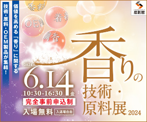 平素は格別のご自愛を賜り、厚くお礼申し上げます。 株式会社プラネットは、2024年6月14日(金)に開催される【香りの技術・原料展2024】に出展致します。 日時:2024年6月14(金) 10:30~16:30 場所:大阪産業創造館 ブース:3階マーケットプラザ No.43 ※ご来場される場合は事前申し込みが必要となります。 芳香剤・消臭剤・除菌抗菌剤・忌避剤・化粧品・医薬部外品など様々な製品を取り扱っておりますが、 今回はOEM・ODMの芳香剤・消臭剤・化粧品メインの展示をさせて頂きます。 今までとは違ったプラネットの1面をお見せできればと思っております。 香りの企画でお悩みのお客様は、是非ともお気軽にお立ち寄り頂けますと幸いです。 皆様のご来場を心よりお待ちしております。